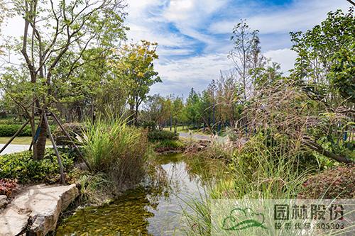 運河灣公園是一個以海綿城市理念打造的景觀公園,從旱溪、濕塘等形式豐富的海綿設施,到各類透水鋪裝材料的應用,海綿城市理念貫穿于公園建設的各個環節。