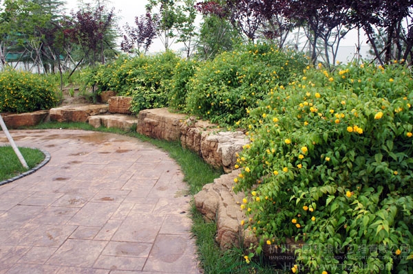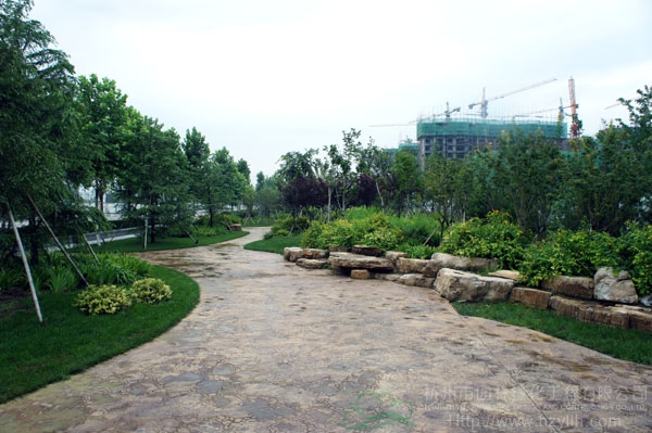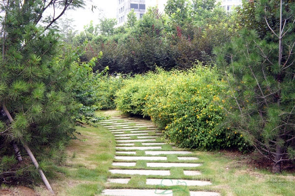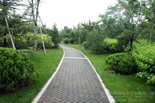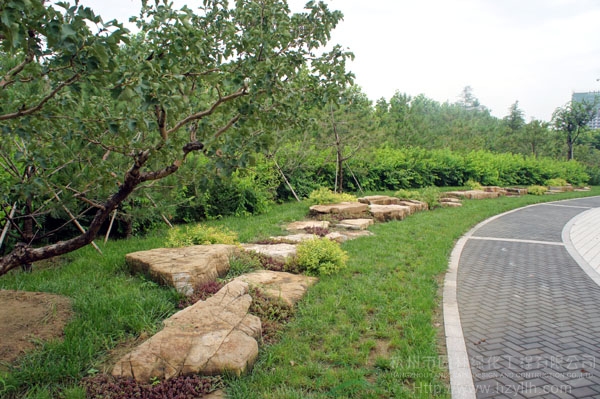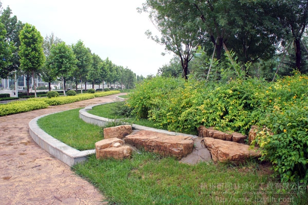 山東壽光市東環路東側綠化改造工程(圣城街-北環路)面積9萬平方米,施工范圍為機動車道與非機動車道之間2.5米的隔離綠化帶和30多米寬的路側綠化帶,施工內容包括土方地形整理、綠化種植、園路鋪裝、景石擺放、景觀小品營建等。2009年9月開工,2010年7月竣工。經過2年的精心養護,如今,這里樹木蔥郁,花草繁茂,一路走來,隨著多種風格的園路在腳下延伸,風景也在眼前不斷變化。