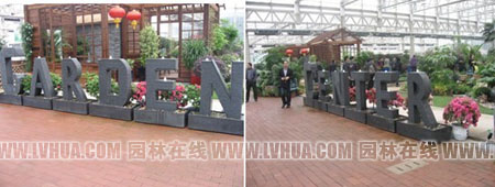 一進入室內(nèi),首先映入眼簾的就是“GARDEN CENTER”(花園中心)幾個大字,仔細一看,上面還有流水青煙,十分吸引人的眼球。花園中心內(nèi)不僅展示了各式各樣的室內(nèi)植物、庭院植物,更有各種肥料、工具等園林資材展示。