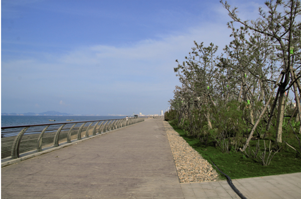 煙臺屬暖溫帶季風氣候,但是瀕海地又受到海洋性氣候的影響,經常受海潮海風侵襲和土壤鹽漬化、干旱化威脅,導致適宜生存的植物種類少、綠化難度大。該項目緊臨海邊,因此,如何正確選擇植物品種,在提高植物成活率的同時又保證景觀效果的豐富,是其面臨的一大難題。