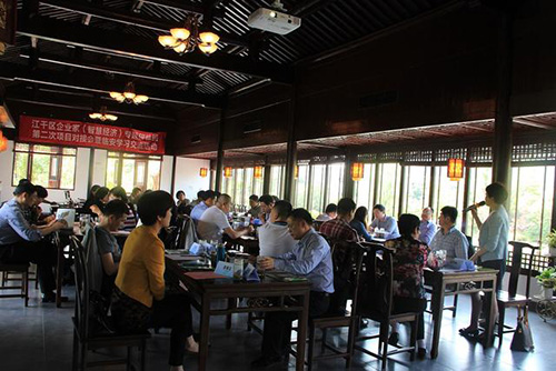 在畫境·青山湖花園一間中式木樓中,聚集著近30位江干區政府、發改局和各行各業的優秀企業家。