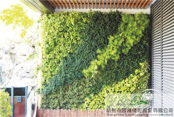 位于展園富春山居負(fù)一層門(mén)口右側(cè)的垂直綠墻,選用小葉梔子、龜甲冬青、黃金海岸線柏、火焰南天竹、哈伯南天竹、常春藤、吊蘭等植物,以“絲”為筆,用流暢的線條勾勒出浙江絲綢之美,體現(xiàn)浙江絲綢之韻,描繪出一幅柔軟飄逸的浙江絲綢之畫(huà)。