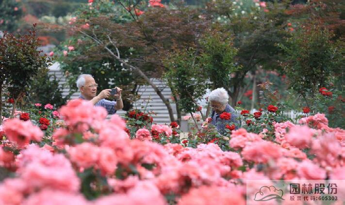 以月季為主題植物,在公園主要出入口、花壇及草坪區(qū)域配植多種月季園藝品種,形成主題花園,開啟多彩四季。