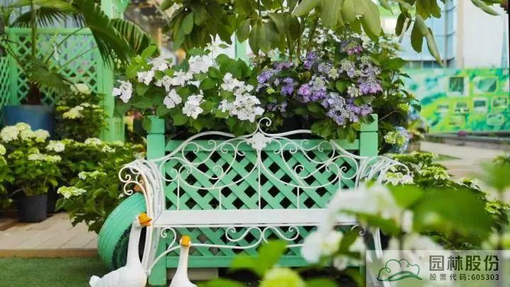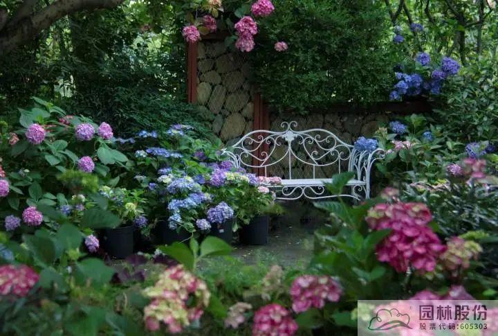 早在2016年,園林股份便專注于繡球花品種的引種收集、新品種選育和生產,在畫境·青山湖花園中心,6萬平方米的連棟溫室和蔭棚區可謂繡球新品種的“孵化器”,10萬余株不同生長階段的繡球花各美其美,蔚為壯觀。