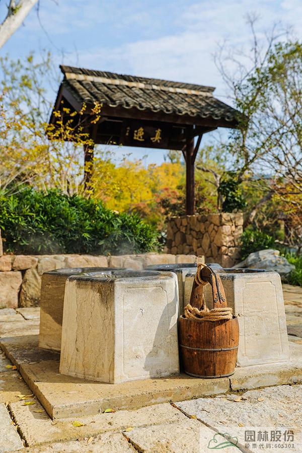借助場地高差順勢而為,掇山理水,合理布局,形成了獨特的“一山、一溪、一湖、一島”的自然山水骨架和“二亭、二橋、二樓(民居)、三門”的建筑格局,通過景序布置、空間轉換劃分出五大展區,既符自然之理,又富美感之趣。民居農田、茶園竹林、鄉風民情在這里融為一體,通過藏、透、回、借、寓等造園手法,從有限到無限,共同組成了天人合一的錢塘人家。