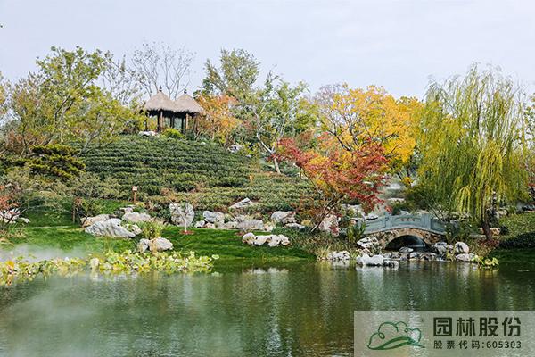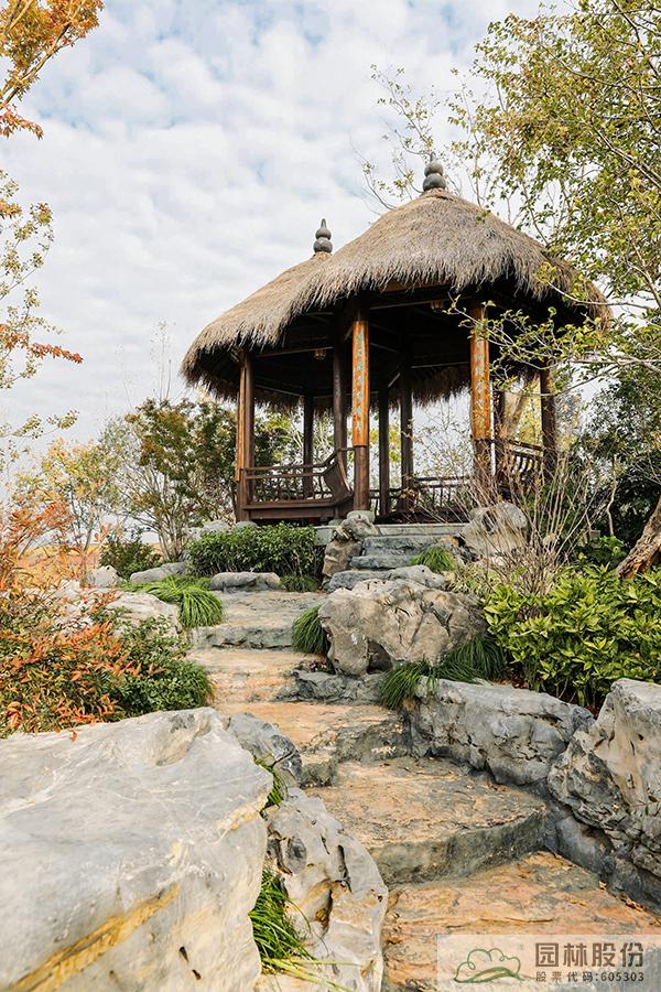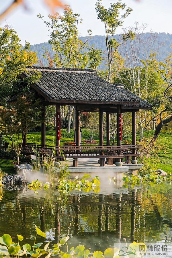 植物景觀:為緊扣設計主題,選用了適宜當地生長、形態優美且體現杭州特色的植物,包括銀杏、金錢松、三角楓、沙樸、烏桕、水杉、桂花、雞爪槭、山茶等共計150余種(含品種),69個科106個屬。通過近自然、群落化的植物配置手法,展示出了杭州師法自然、雅致清麗的植物景觀藝術美。雖因疫情影響,本屆園博會幾經推遲,但時間也驗證了園內植物群落的穩定以及可持續發展的理念。