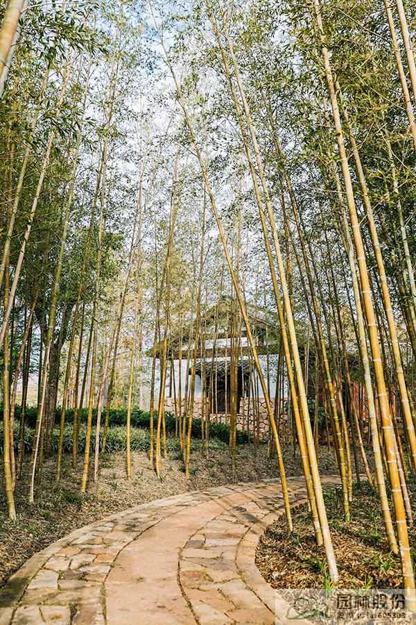竹是新時代杭州重要的文化載體之一。因此入口左側選擇西湖環境中“茂林修竹”之元素,以毛竹種植為主,形成夾景,曲徑通幽。