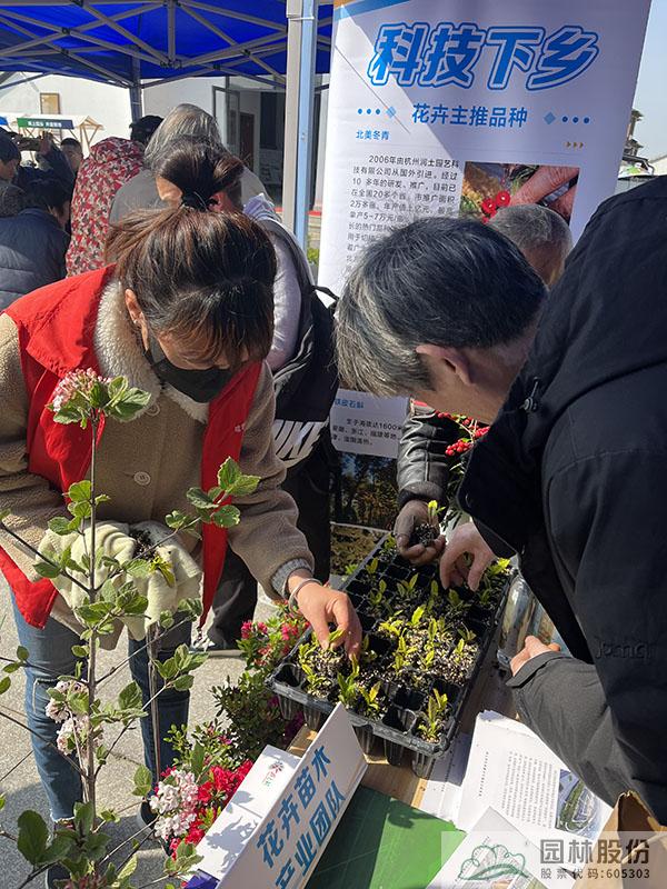 活動以“科技強農促共富、綠色低碳迎亞運”為主題,提供技術培訓指導服務、產品展示推介等科技助農服務,現場人頭涌動。花卉苗木產業團隊的展位展出了多家成員的新優產品,吸引了現場許多人圍觀。其中,園林股份的新優產品彩葉冬青、莢蒾等備受關注,大家紛紛前來咨詢,沈柏春詳細解答了相關產品的特性、組培技術等,大家對新產品的熱情超乎想象,活動還未結束,園林股份的組培種苗已一棵不剩。