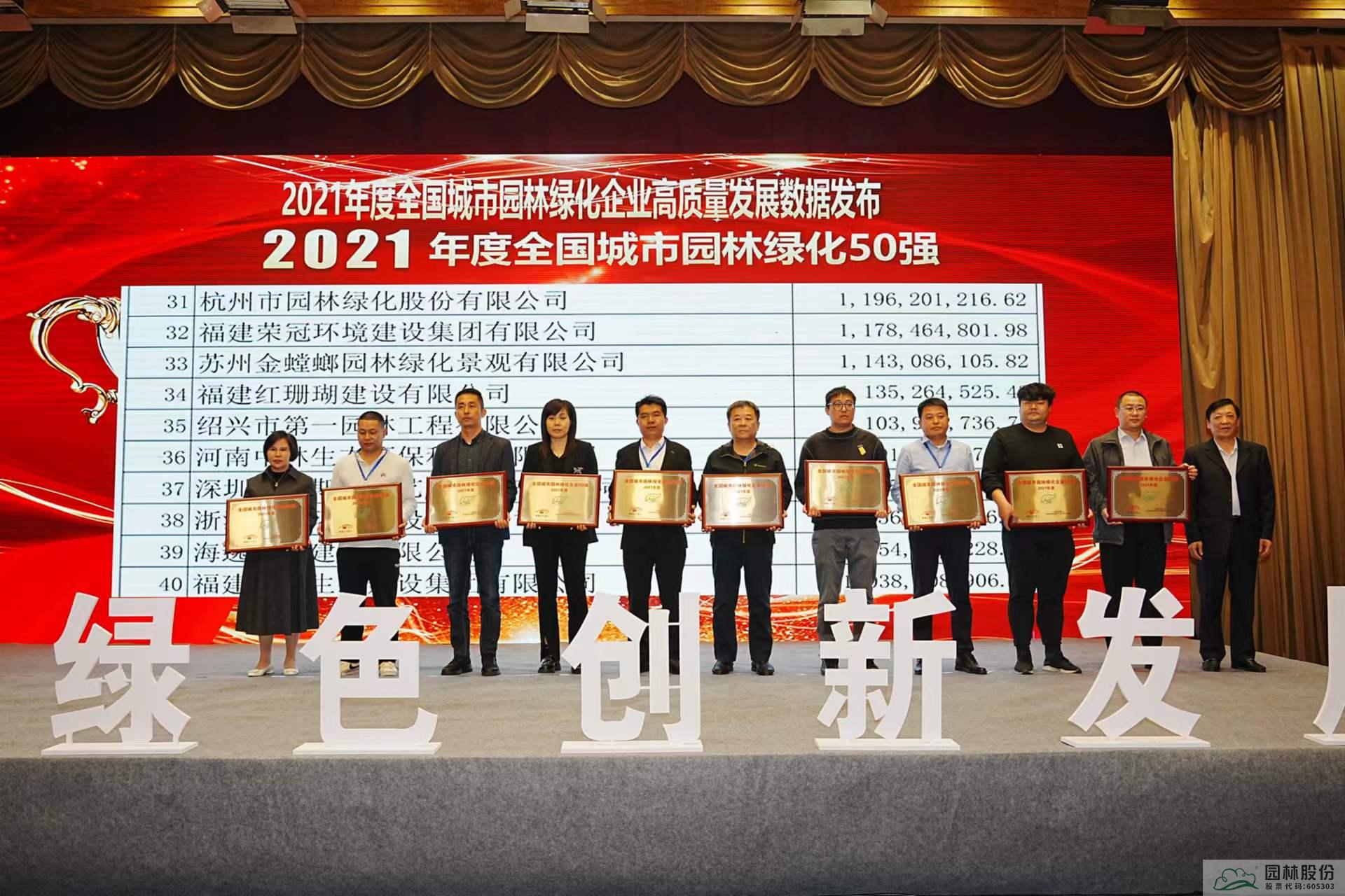 園林股份上榜2021年度全國(guó)城市園林綠化50強(qiáng)