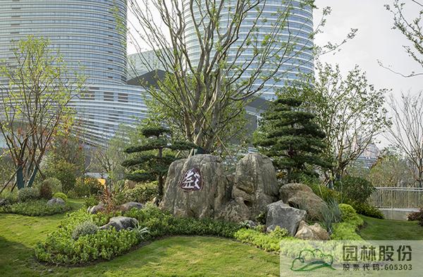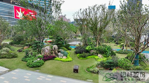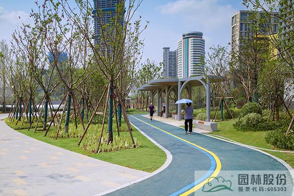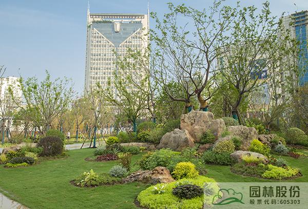 項目注重新優(yōu)植物的應用,行道樹采用娜塔莉、中心廣場通道兩側綠地種植美國紅楓、中心廣場內種植銀杏樹等色葉樹種。翠綠的枝葉相互掩映,樹下設有林蔭座凳,夏季可有“大樹成蔭”之景,市民可觀賞可乘涼,充分感受自然野趣。主道路行道樹為染井吉野等開花與色葉樹種,周邊綠地采用混合花境置石結合的配置手法,時花、低矮花灌木與景石自然搭配,并大量應用了公司自主研發(fā)的繡球新品種,營造景觀豐富的長效花境景觀。
