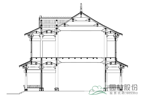 3.尺度比例:依據明清工程做法確定主體構架、屋頂結構、維護結構、臺基地面和裝飾構件五部分的樣式、比例、材料選擇等,使建筑與周圍的景觀相協調。