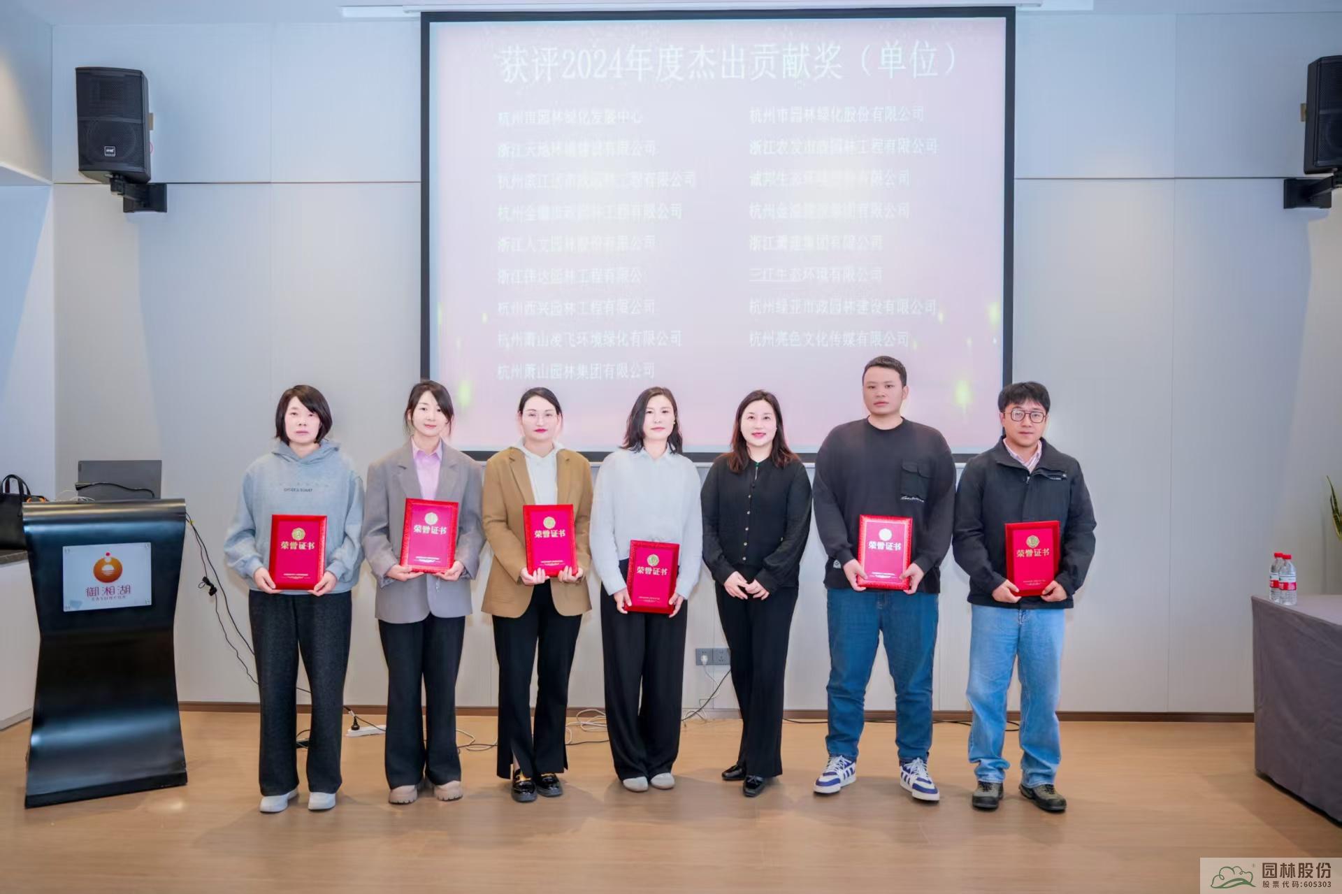 會上,對2024年度優秀通訊員、優秀聯絡員、杭州市園林綠化行業優秀媒體、杰出貢獻獎等進行了表彰。其中,鑒于企業在資源支持、活動協辦、推動行業協作、社會責任履行等方面的貢獻突出,杭州市園林綠化股份有限公司獲評“2024年度杰出貢獻獎”。