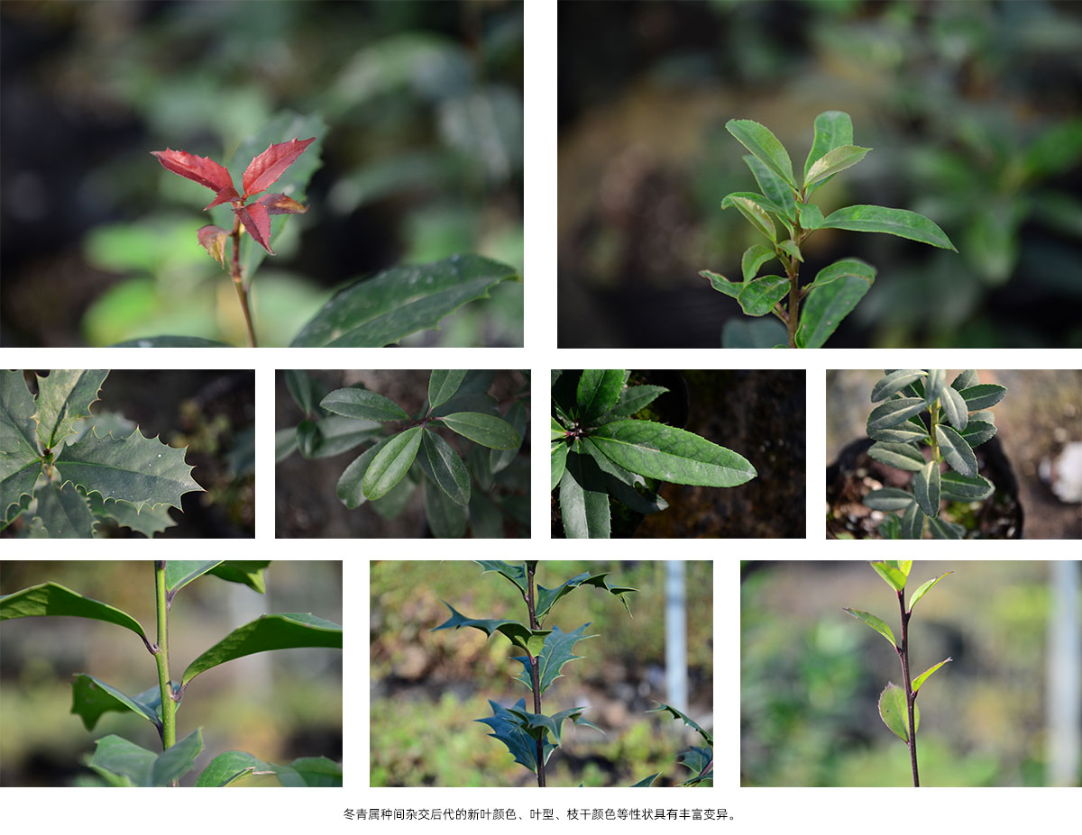 以人工授粉和開放授粉手段進行基因滲入,結合多倍體誘導、輻射誘變和分子標記等多種現代育種技術,開展了冬青屬、木犀屬、鳶尾屬和繡球屬等多種觀賞植物育種工作,獲得大量具有豐富遺傳變異群體。