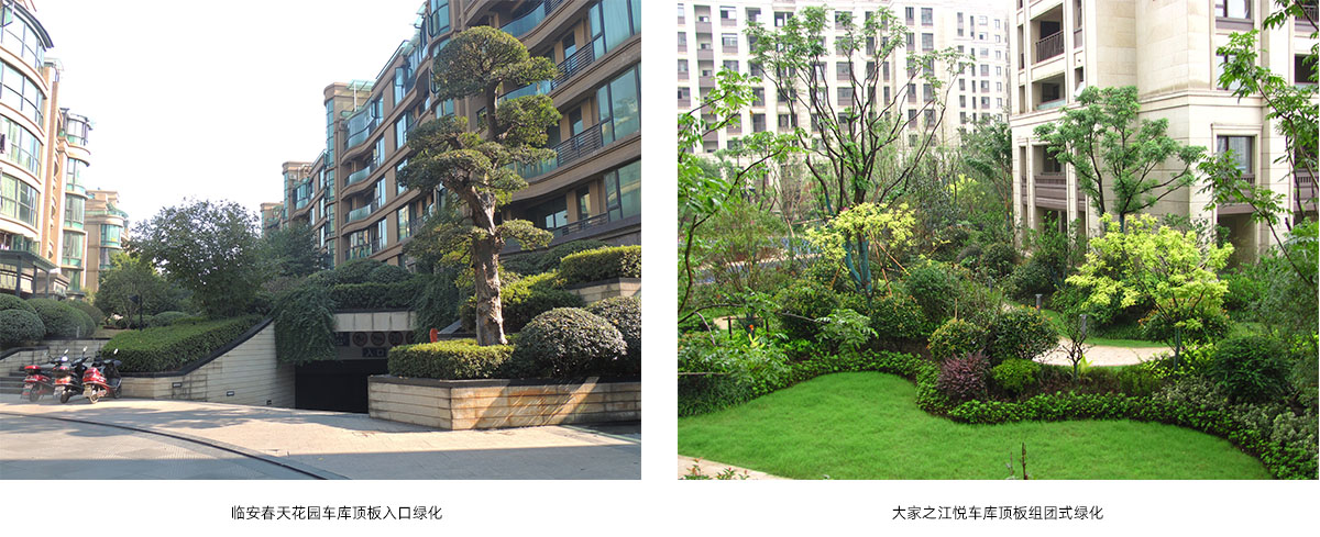 利用梁柱、承重墻等結構的設置,增加頂板覆土厚度,提高植物群落復雜程度,豐富景觀多樣性。并通過排水系統、輕型基質、花箱等種植方式的利用,建立形式多樣、種類豐富的頂板結構景觀模式。